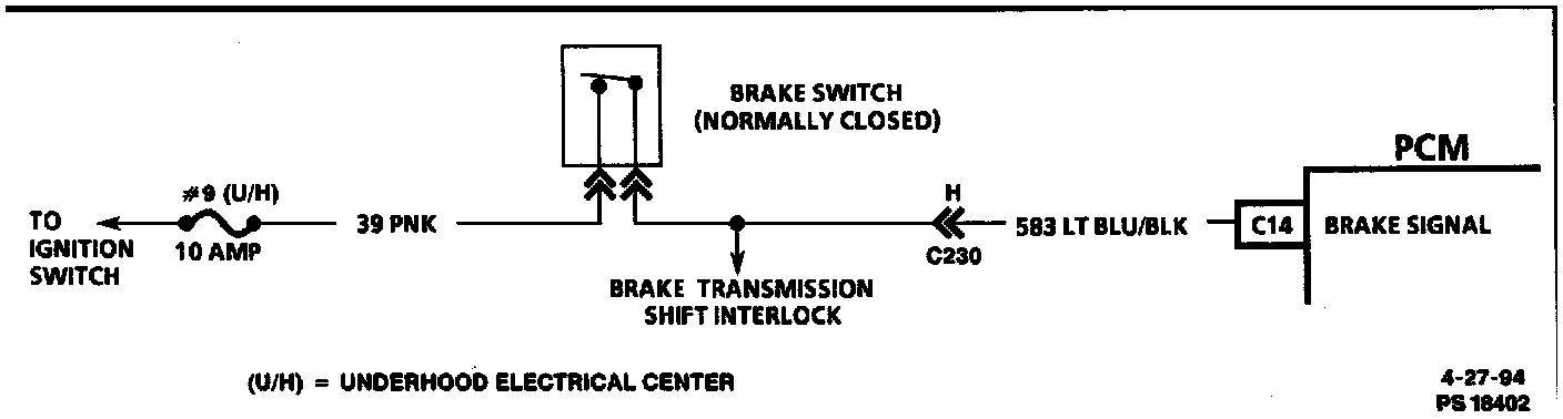 The Torque Converter Clutch (TCC) brake switch is used to indicate brake pedal status. The normally closed brake switch supplies a Battery Positive (B+) signal on CKT 583 to the Powertrain Control Module (PCM). The signal voltage is opened when the brakes are applied. The PCM uses this signal to de-energize the TCC solenoid when the brakes are applied.