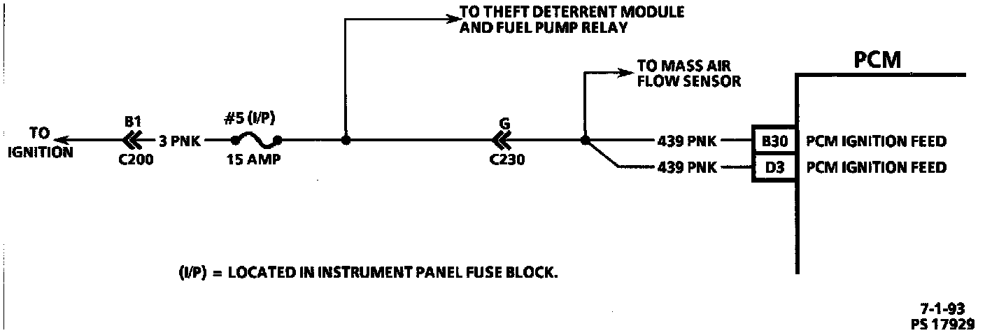 CKT 439 is the ignition feed to the Powertrain Control Module (PCM)on terminals "B30" and "D3." The PCM monitors the voltage at terminal "D3."