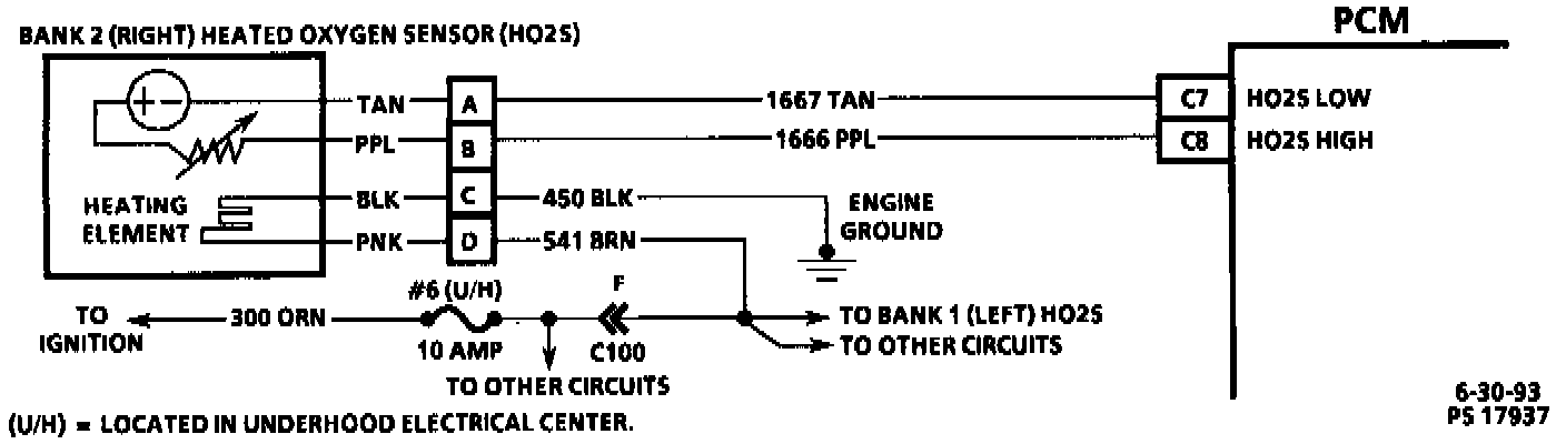 The sensor is like an open circuit and produces no voltage when it is below 315°C (600°F). An open sensor circuit or cold sensor causes "Open Loop" operation. Whenever the ignition is "ON" voltage is supplied to the HO2S heaters on CKT 541. Even with the engine not running, the HO2S will reach operating temperature and indicate the oxygen content of the exhaust gas at the sensor. Typically the signal voltage will be near 450 mv at key-up. The signal voltage will then rise or drop as the sensor becomes active, depending on the oxygen content of the air near the sensor.
