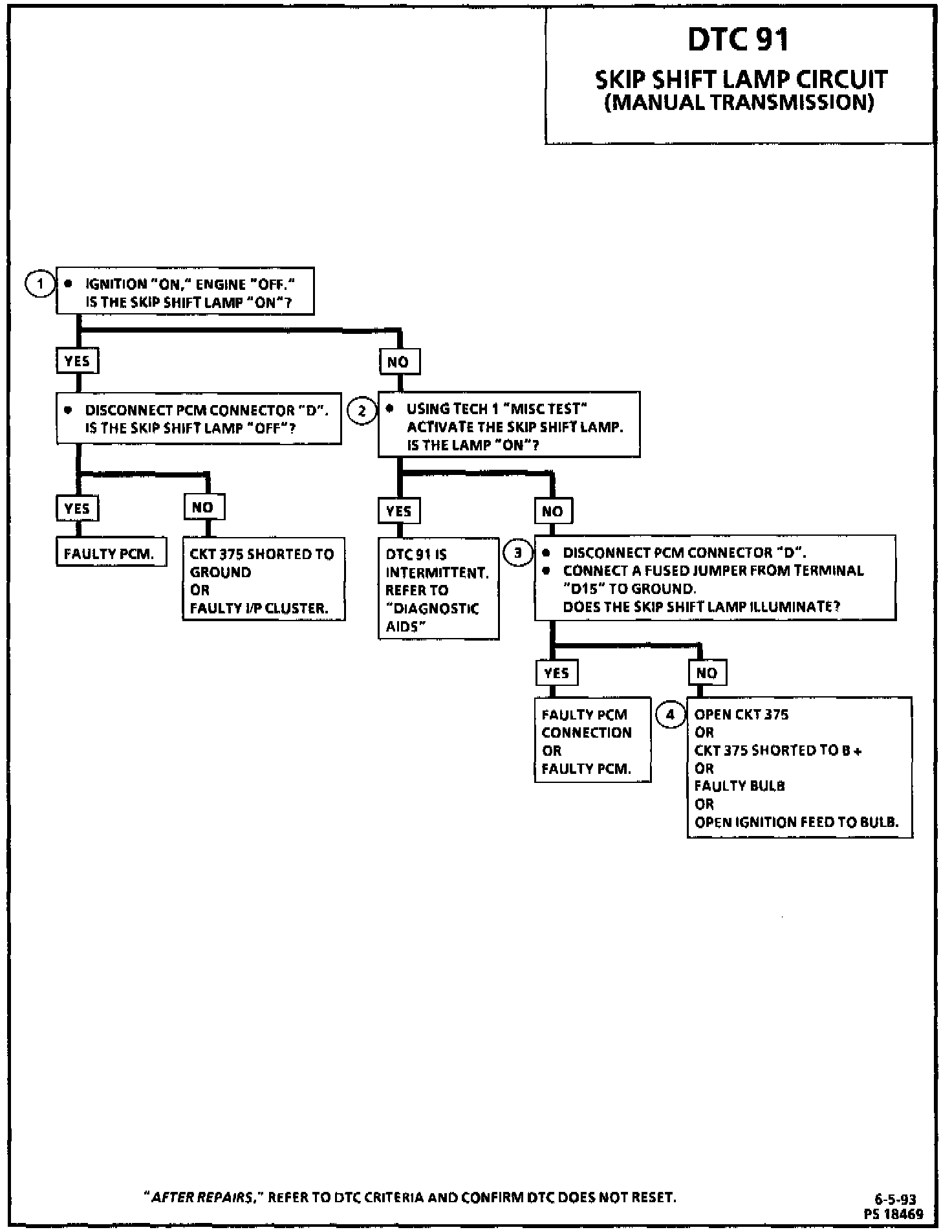 1. This should not turn "ON" the skip shift lamp. If the lamp is "ON," there is a short to ground in CKT 375 wiring or a fault in the PCM.