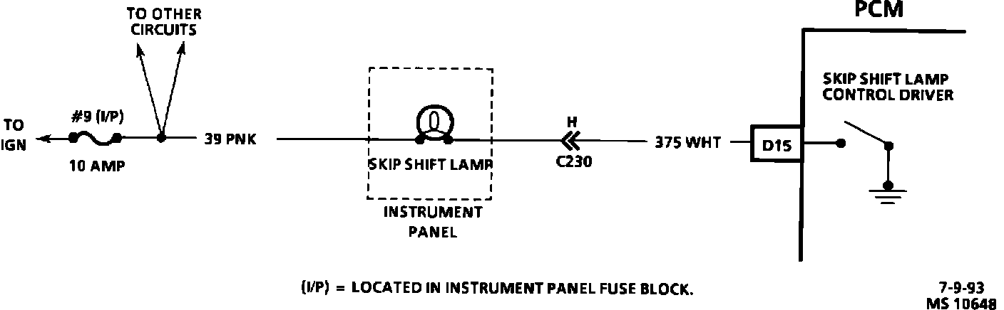2. The PCM should ground CKT 375 and the skip shift lamp should come "ON."