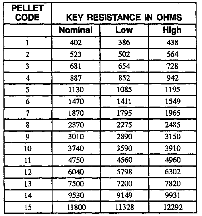 PASS-Key II(R) Key Resistance Chart: