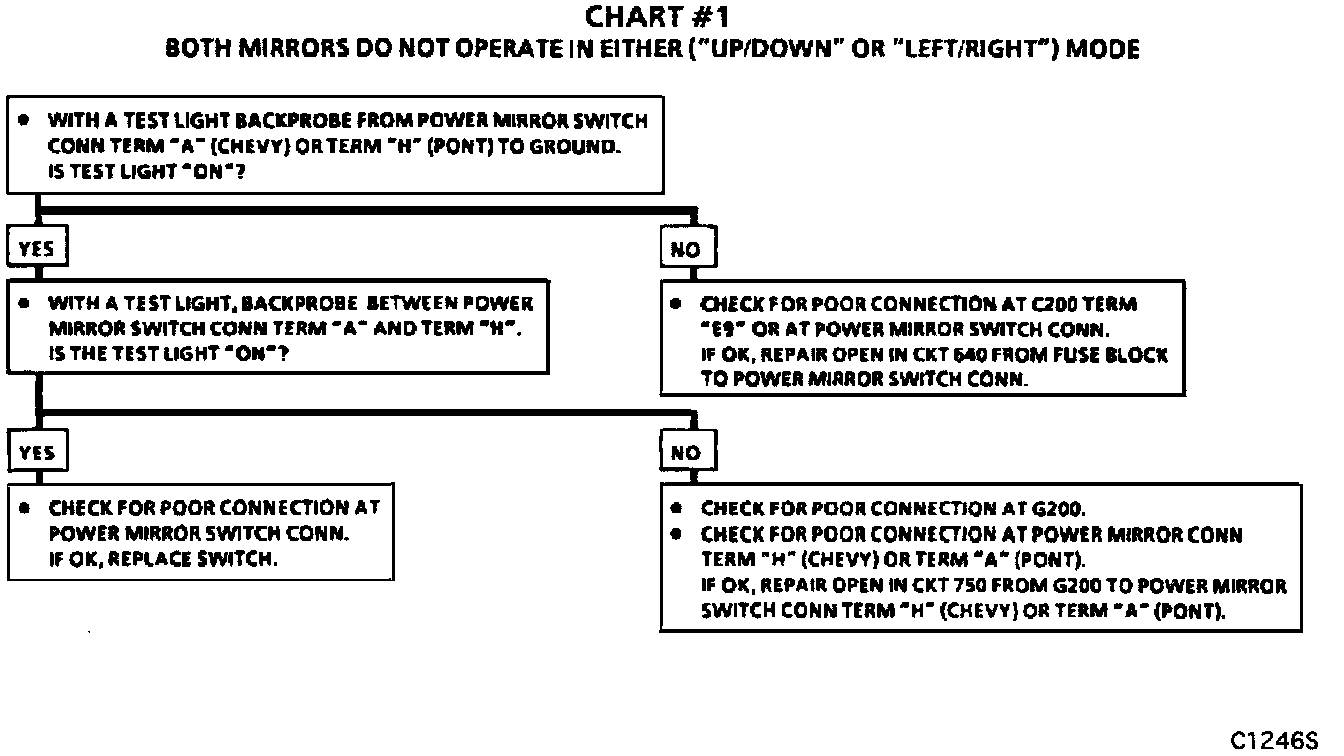 Chart #1 Both Mirrors Not Operate In Either Mode: