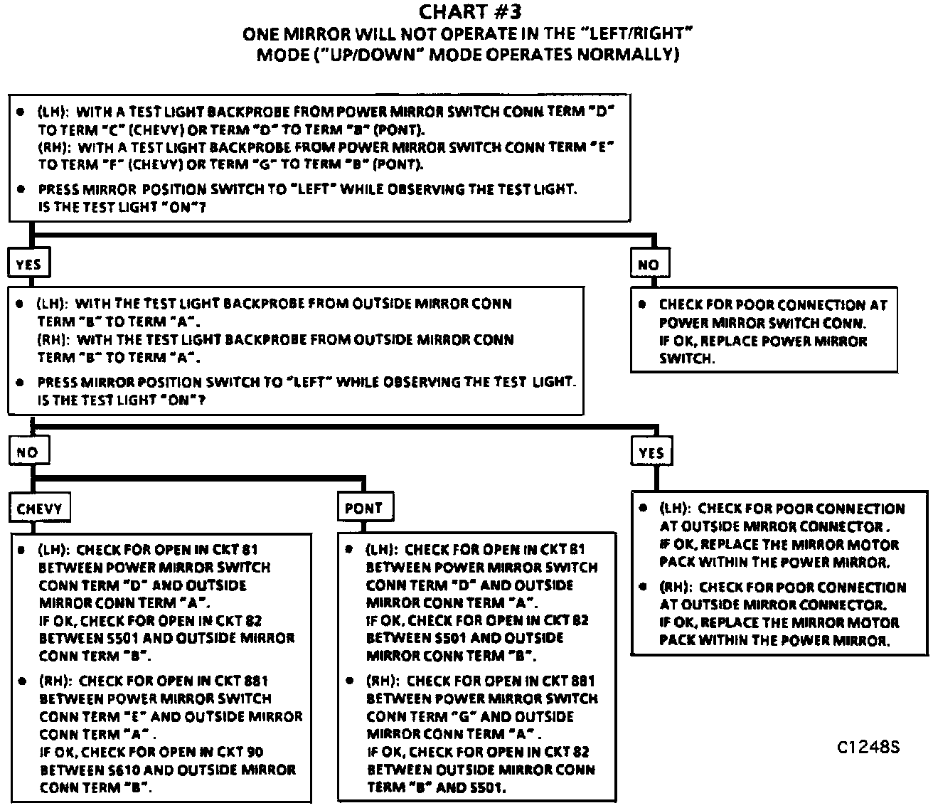 Chart #3 One Mirror Will Not Opeate In Left/Right Mode: