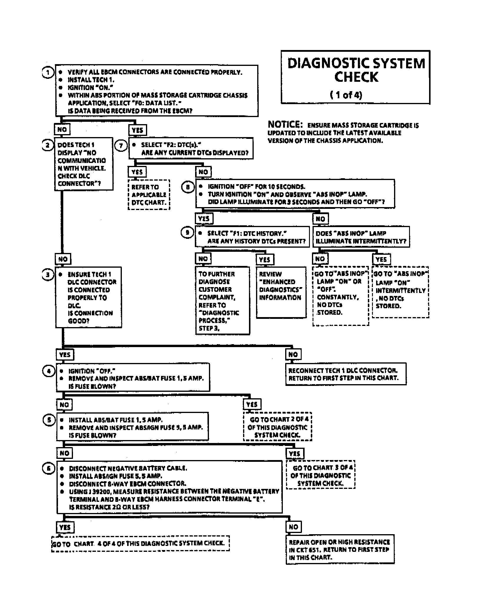 The diagnostic system check is an organized approach to identifying a problem created by an Antilock Brake System (ABS-6) malfunction. It must be the starting point for any ABS-6 complaint diagnosis because it directs the service technician to the next logical step in diagnosing the complaint.