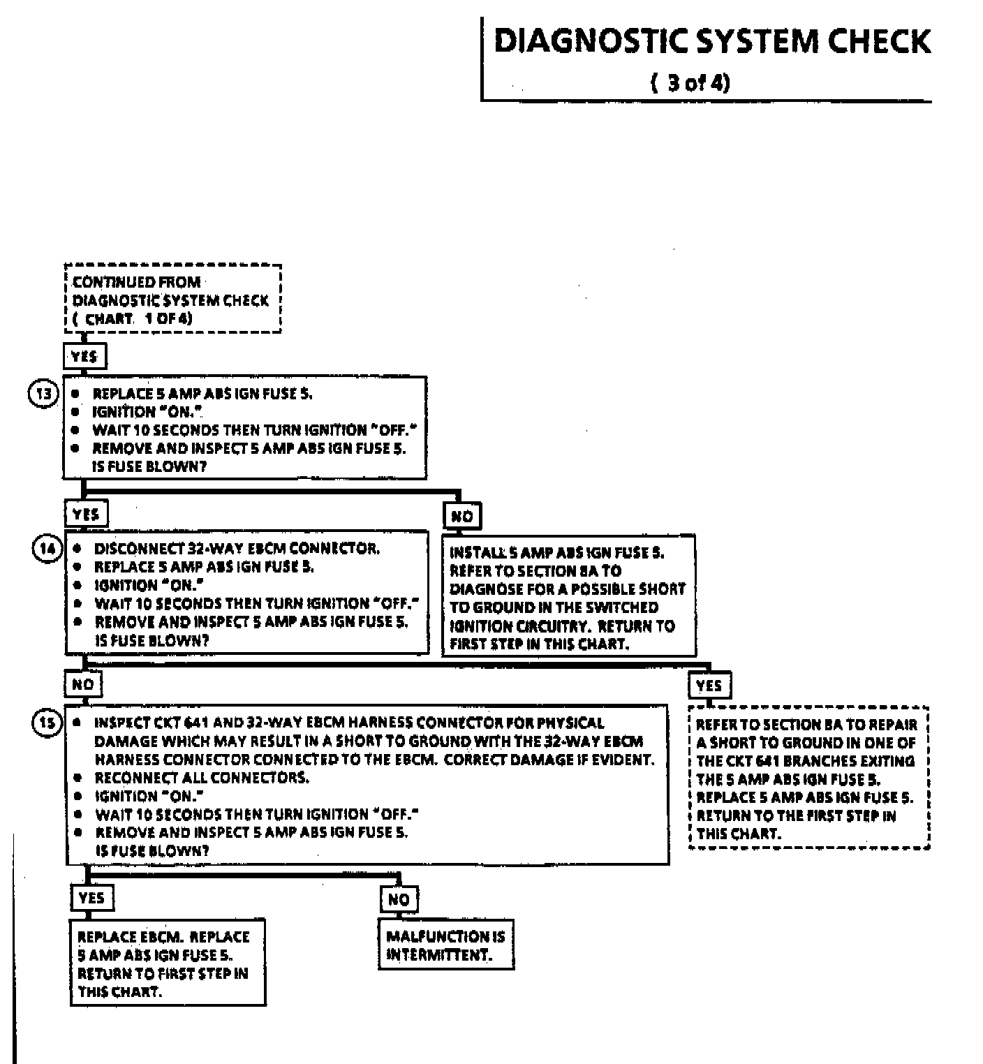 13. Checks for possible short to ground in the switched ignition circuitry.