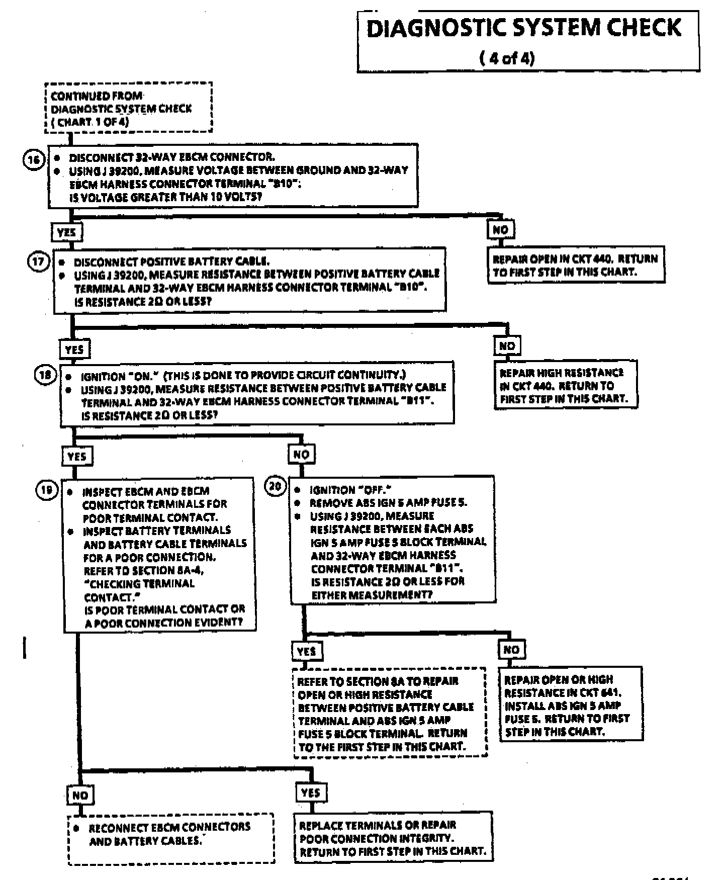 20. Checks for high resistance in the switched ignition circuit between the fuse block and the EBCM.