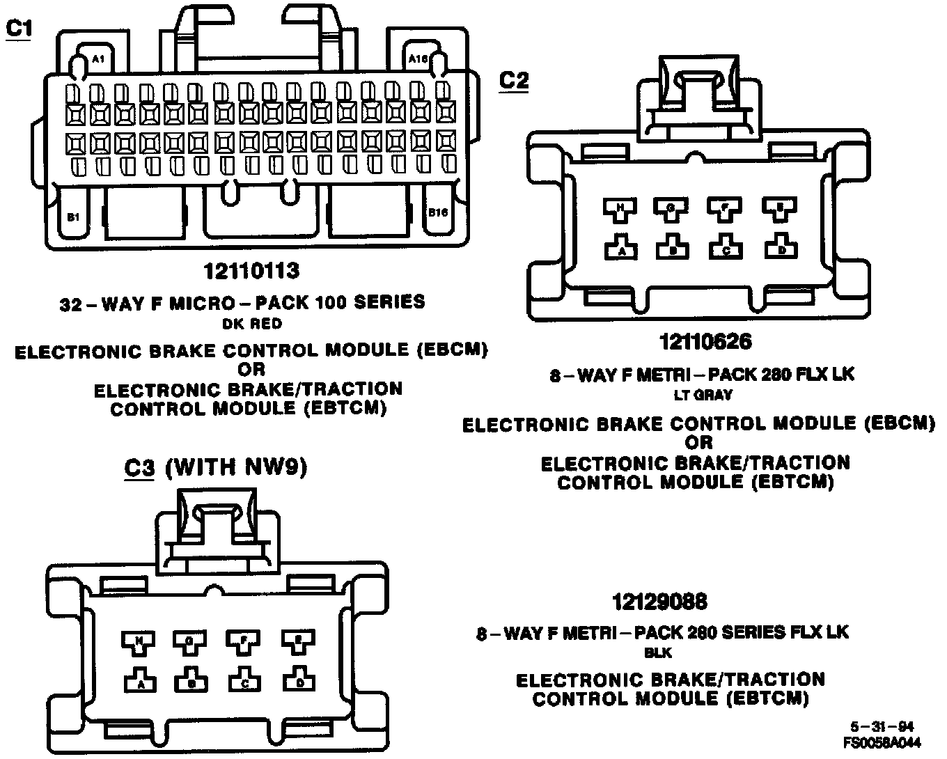 Connector View: Electronic Brake/Traction Control Module (EBTCM) (C1, C2 C3):