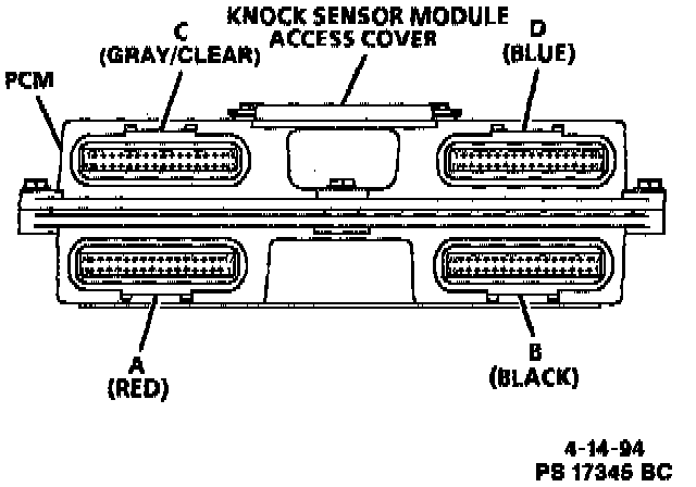 CAUTION: Do not backprobe Powertrain Control Module (PCM) connectors. The connectors are sealed for operation in an underhood environment. Backprobing may damage the seal which could eventually cause the connector to fail due to corrosion.