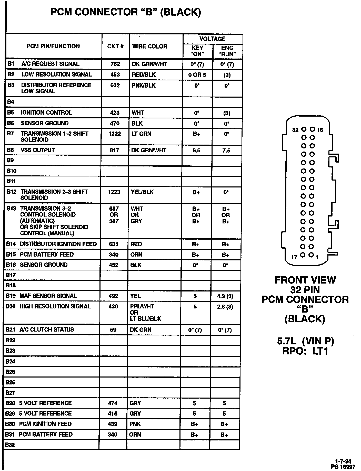 This information applies to the PCM connector charts in the next four images. These charts may be used with the J 39700-A breakout box in conjunction with J 39700-110 and J 39700-140 cables and high impedance digital multimeter J 39200 to obtain voltage present for each circuit listed. Install the breakout box between the PCM connectors and the PCM. The breakout box PIN numbers correspond with the PCM connector PIN numbers. Voltage may vary slightly, but should be very close. Certain exceptions are called out in the chart legend below.