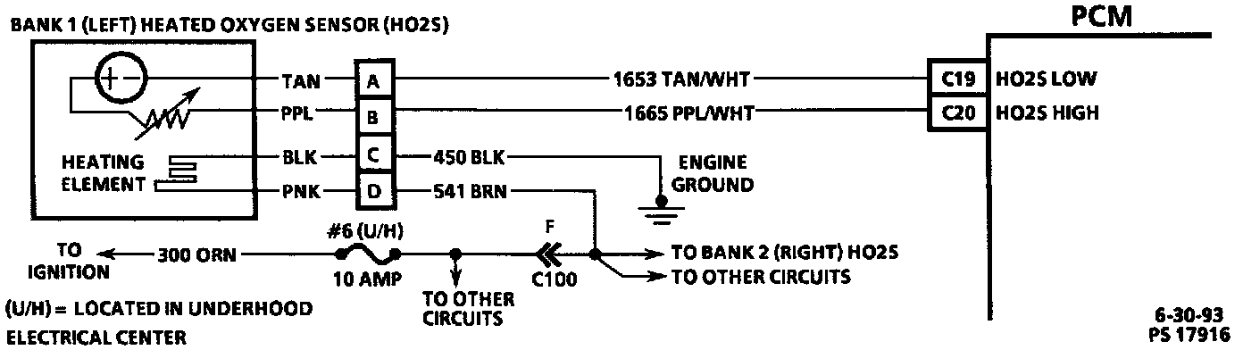 Bank 1 (left) Heated Oxygen Sensor Circuit: