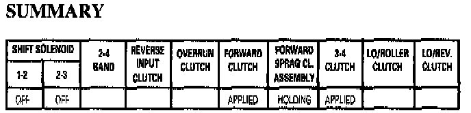 2-3 Shift Solenoid: This solenoid remains de-energized as in Fourth gear and AFL fluid exhausts through the solenoid.