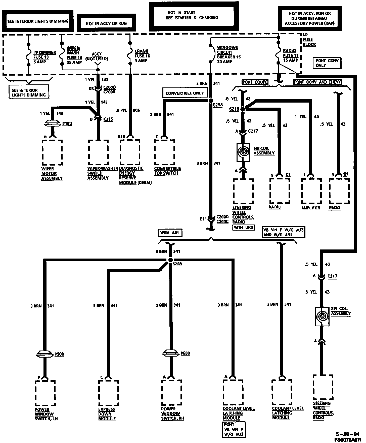 I/P Fuses 13, 14, 16, 17 and Windows Circuit Breaker