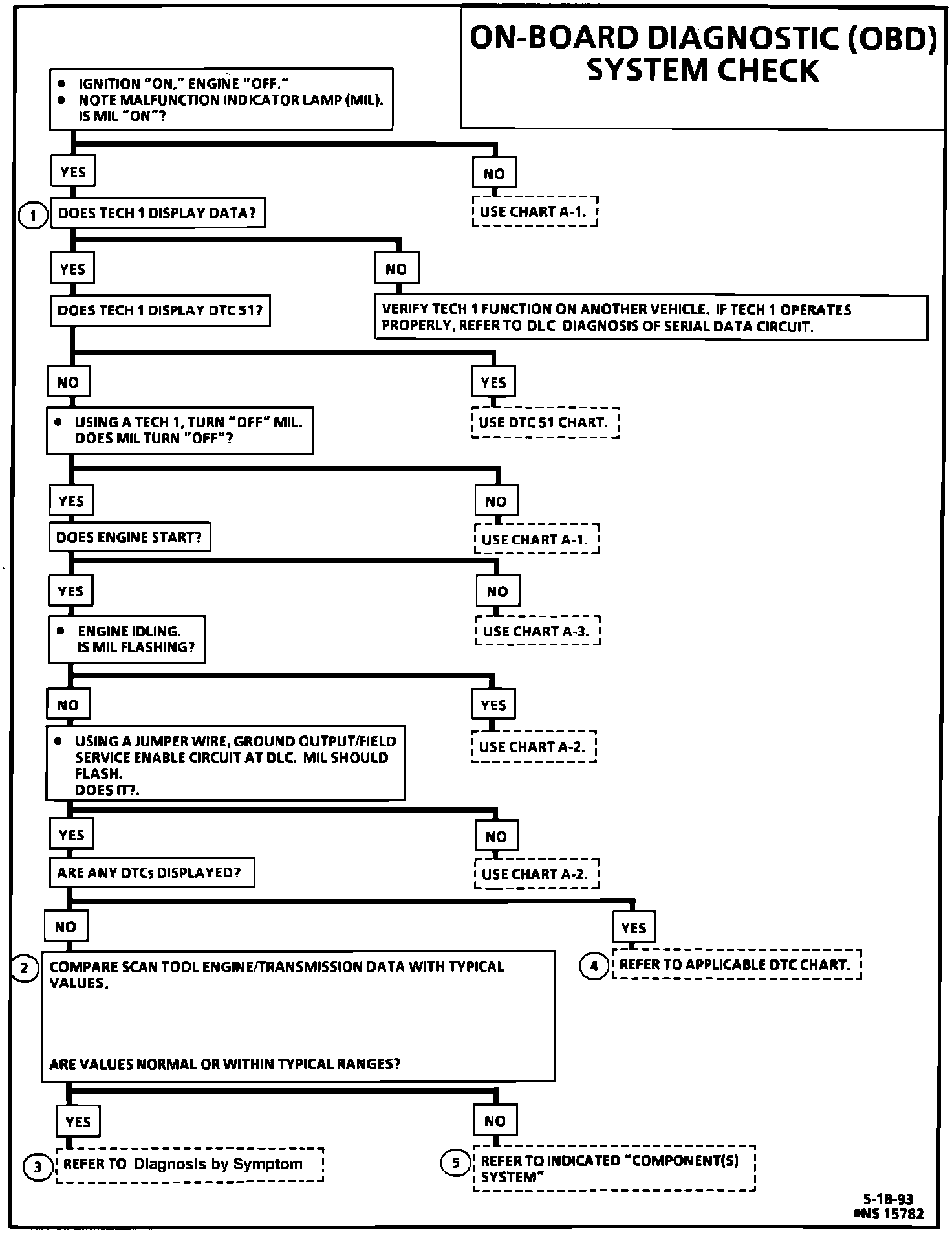 The On Board Diagnostic (OBD) system check is an organized approach to identifying a problem created by an electronic engine control system malfunction. It must be the starting point for any driveability complaint diagnosis, because it directs the service technician to the next logical step in diagnosing the complaint. Understanding the chart and using it correctly will reduce diagnostic time and prevent the unnecessary replacement of good parts.