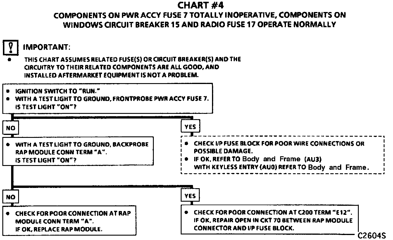 Chart #4 Components On PWR ACCY Fuse 7 Totally Inoperative: