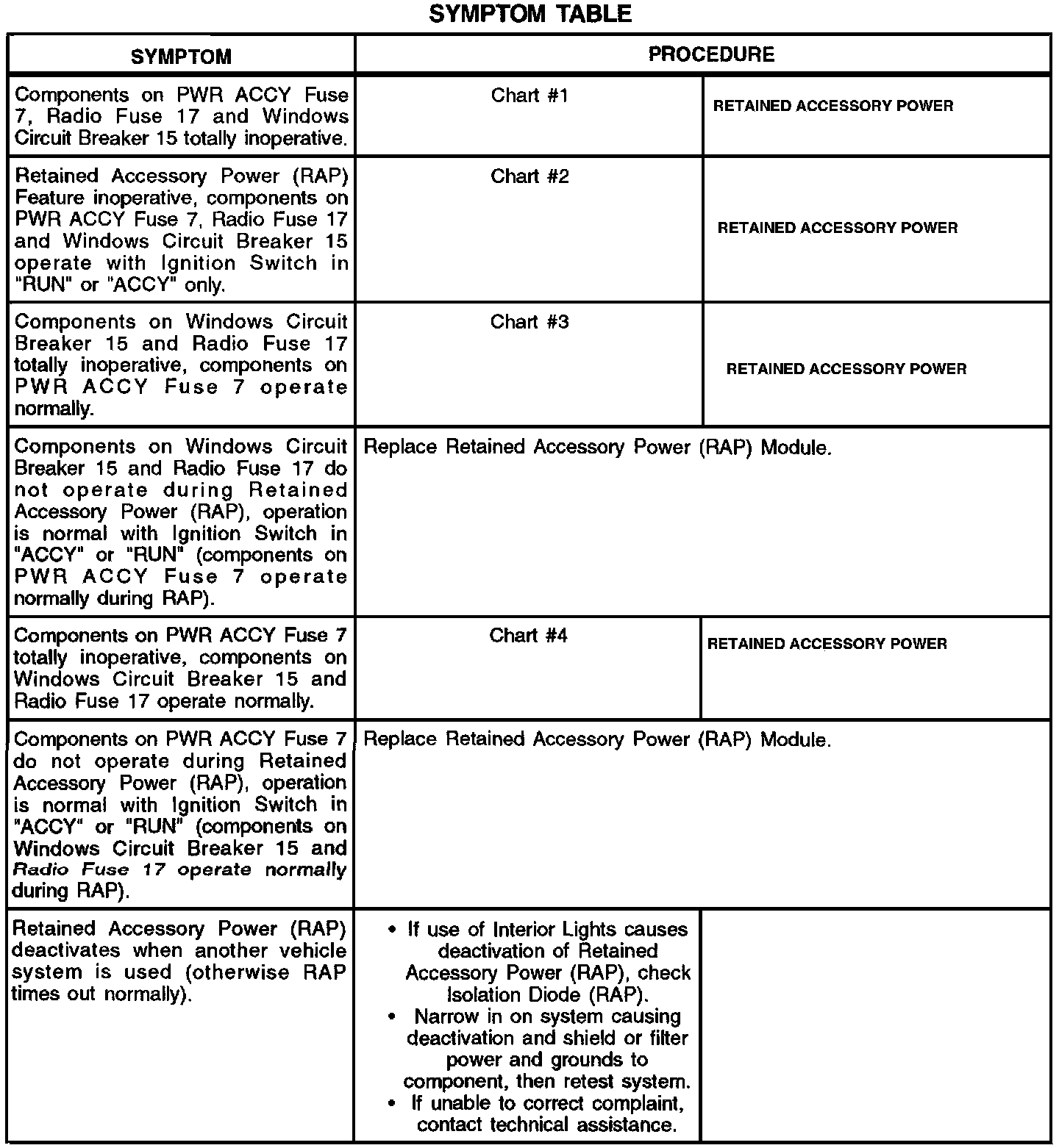 Symptom Table (Part 2 Of 2):