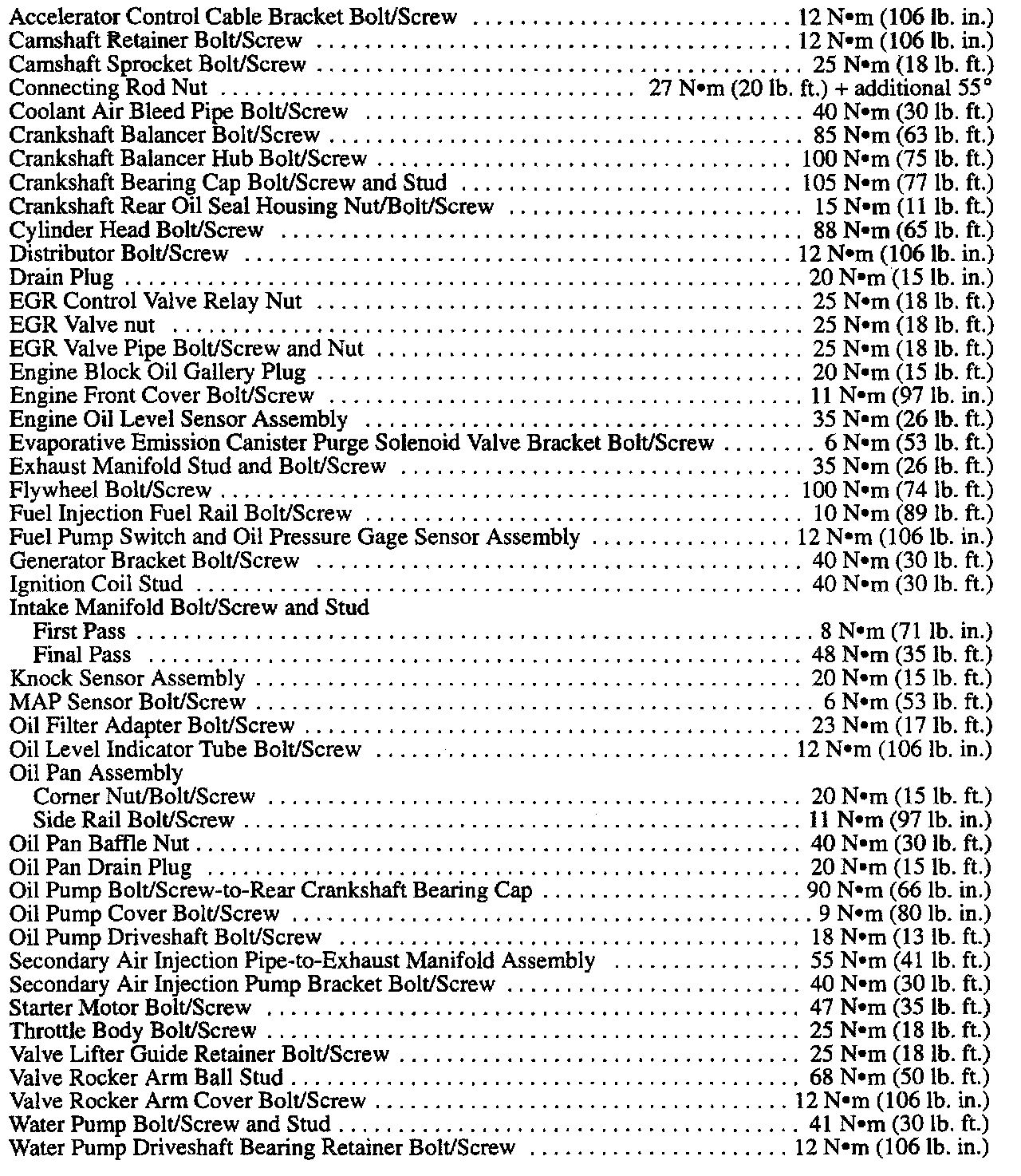 Fastener Tightening Specifications - Engine