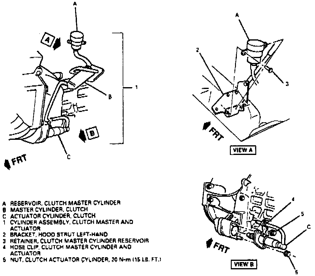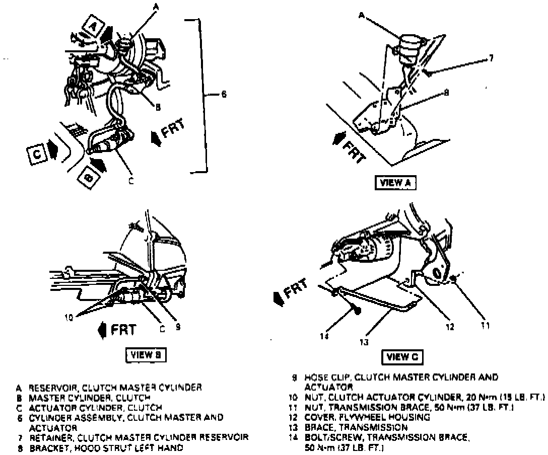 10. Install clutch master cylinder nuts and torque to 20 ft. lbs., then inspect fluid level, adding fluid if necessary.