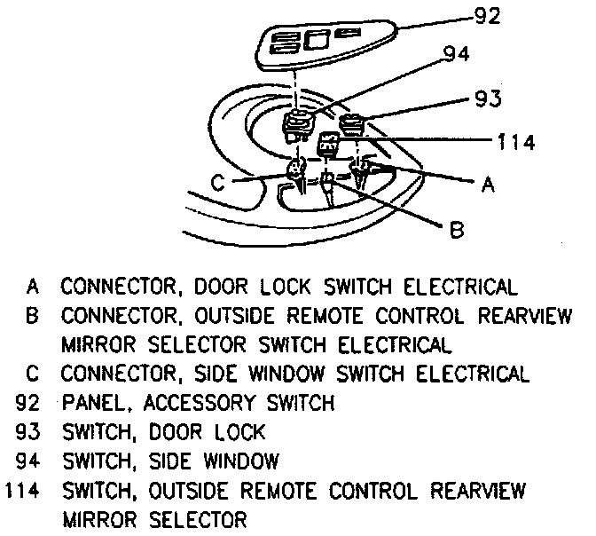 2. Switch (93, 94 or 114) by prying with a flat-bladed tool to release switch (93, 94, or 114) from panel assembly (92).