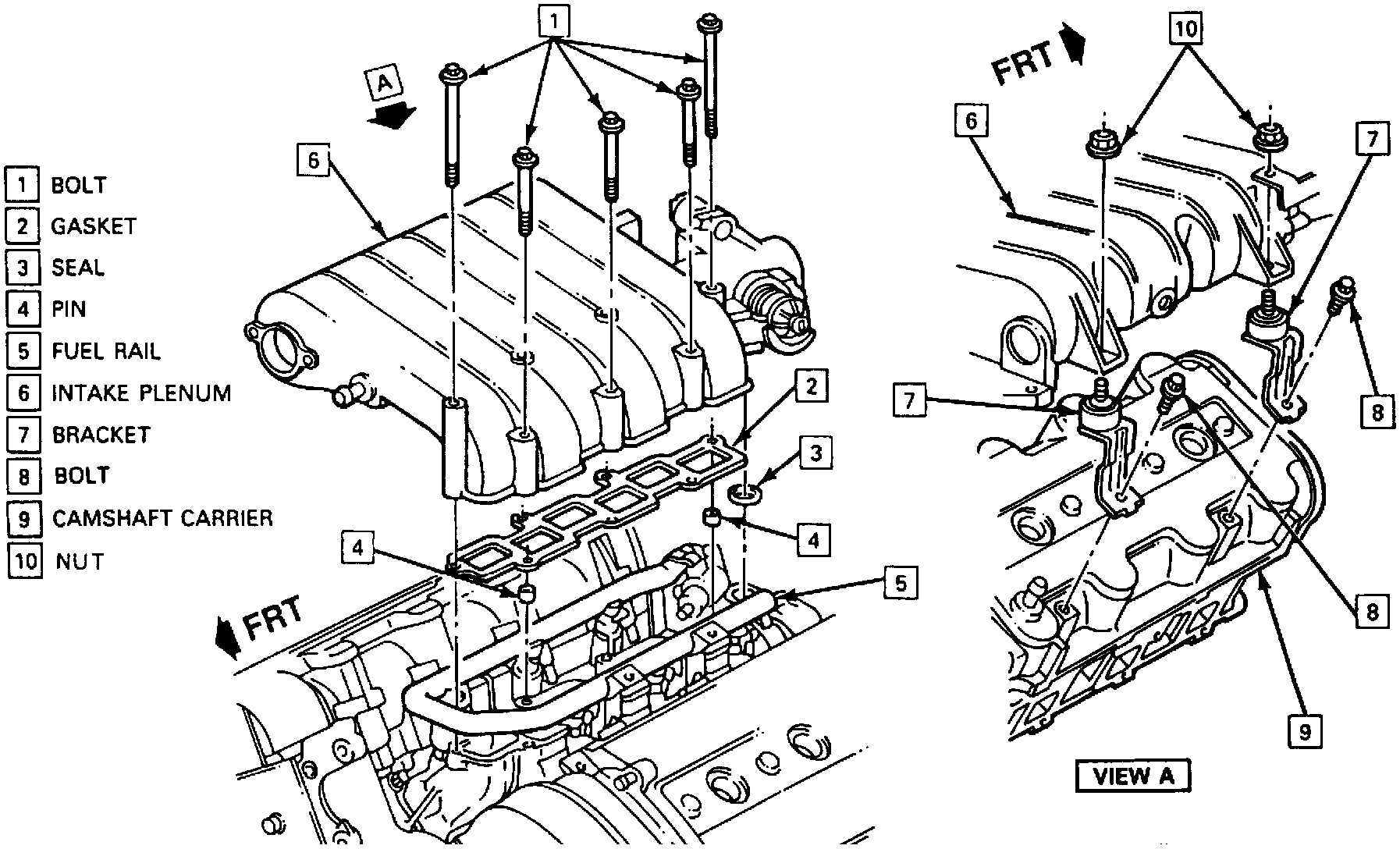 1. Upper intake manifold and gasket.