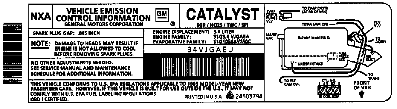 This label is located in the engine compartment of every General Motors vehicle. If the label has been removed, it can be ordered from GM Service Parts Operations (GMSPO).