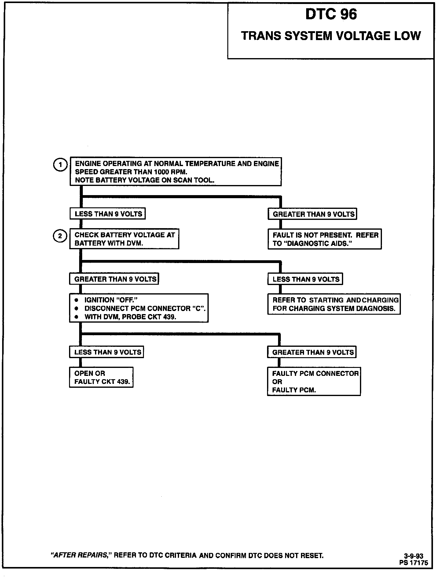 Diagnostic Trouble Code (DTC) 96 Will Set When: Minimum voltage sensed at the ignition feed is as follows: