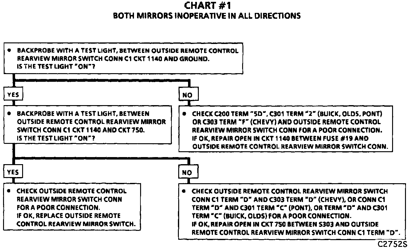 Chart #1 Both Mirrors Inoperative In All Directions: