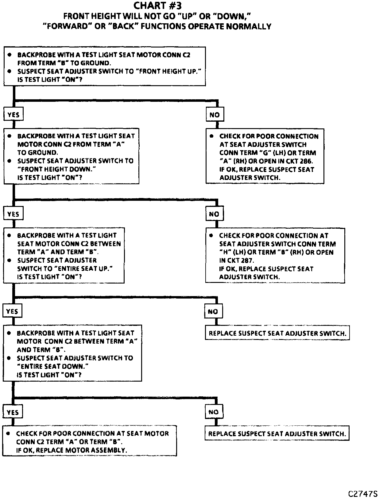 Chart #3 Front Height Will Not Go UP/DOWN, FORWARD/BACK Functions Operate Normally: