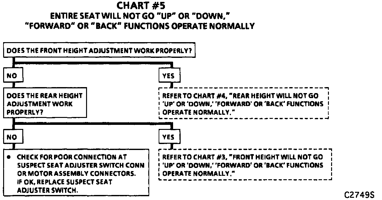 Chart #5 Entire Seat Will Not Go UP/DOWN, FORWARD/BACK Functions Operate Normally:
