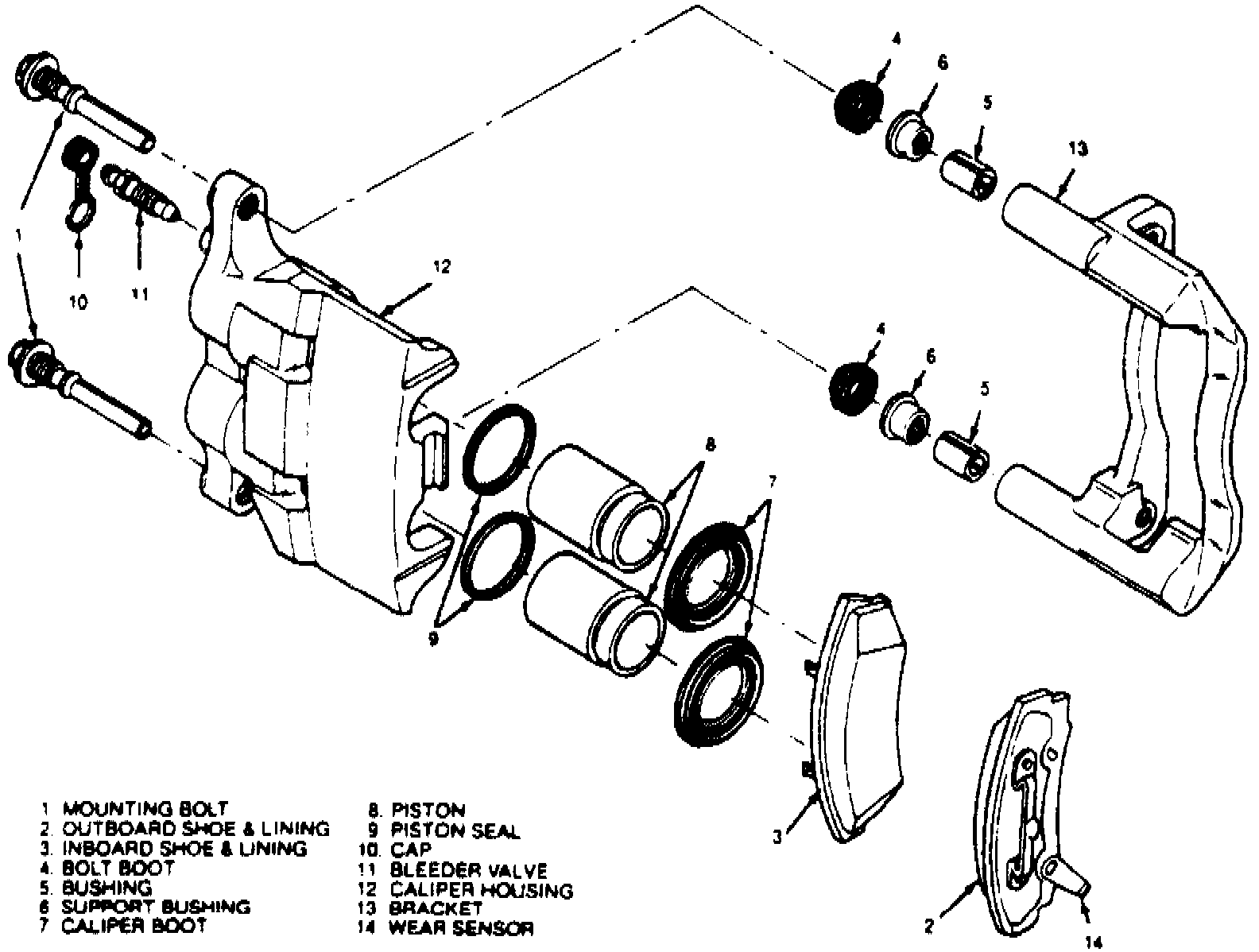 Fig. 1 Exploded View Of AC-Delco 3242 Series Dual Piston Caliper.: