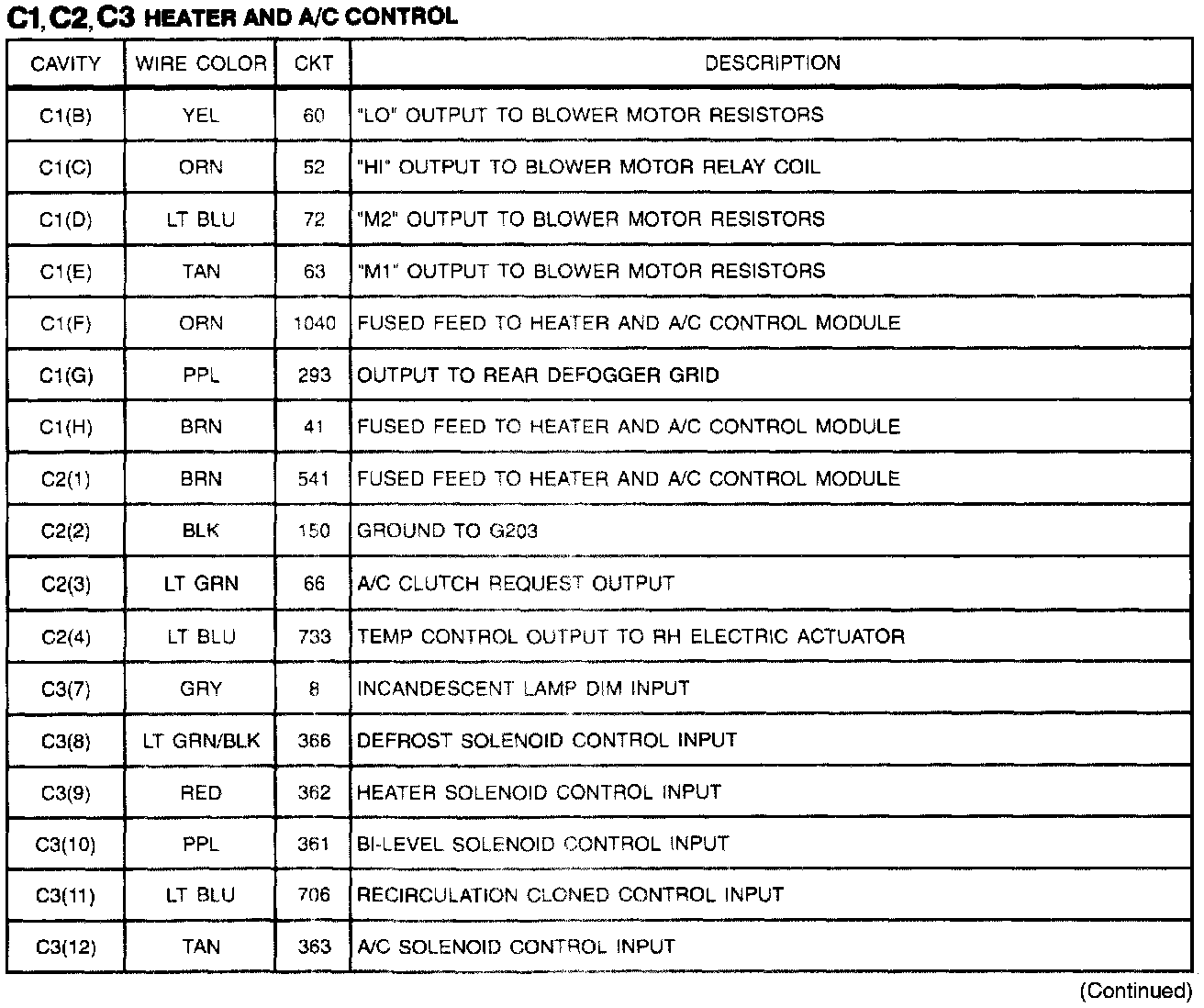 C1, C2 & C3: Heater And A/C Control (C60/C67) (Part 1 Of 2):