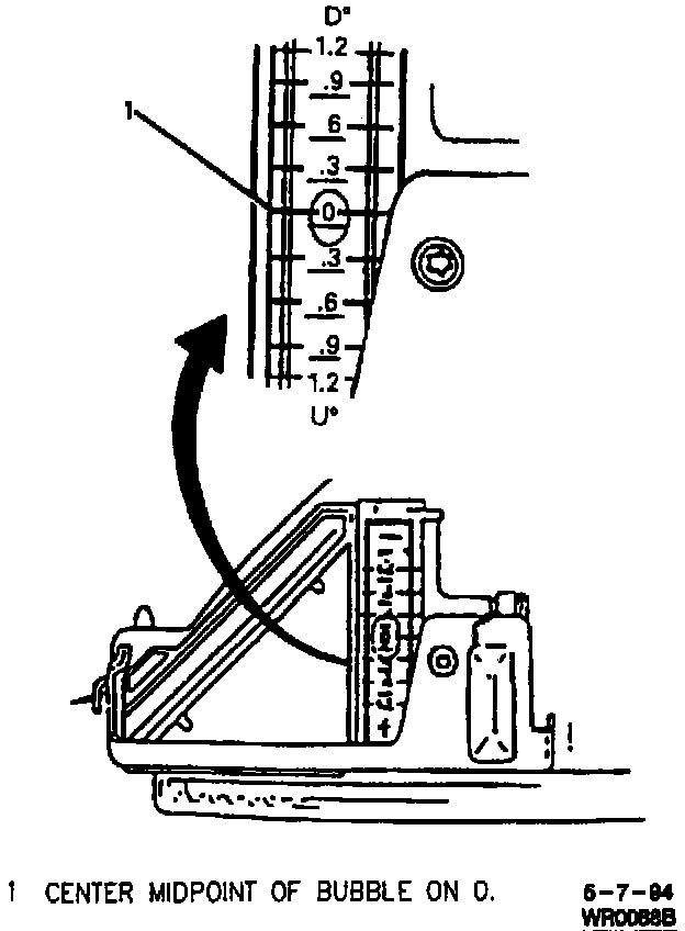 3. Adjust vertical aim by turning vertical aiming screw until bubble in level is centered at "0" (Zero).