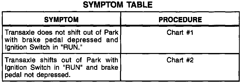 A Symptom Table - Brake Transaxle Shift Interlock
