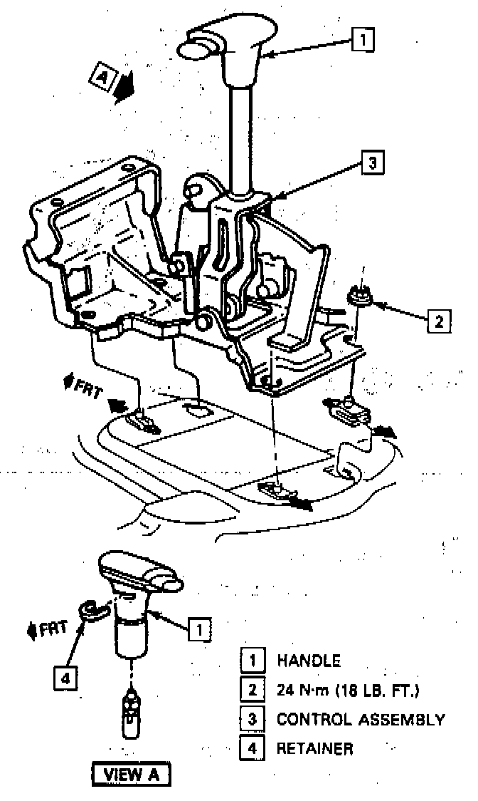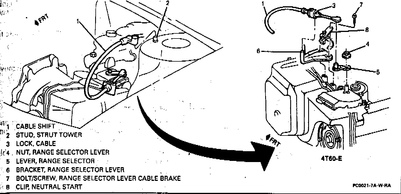 7. Cable to transaxle lever and bracket.
