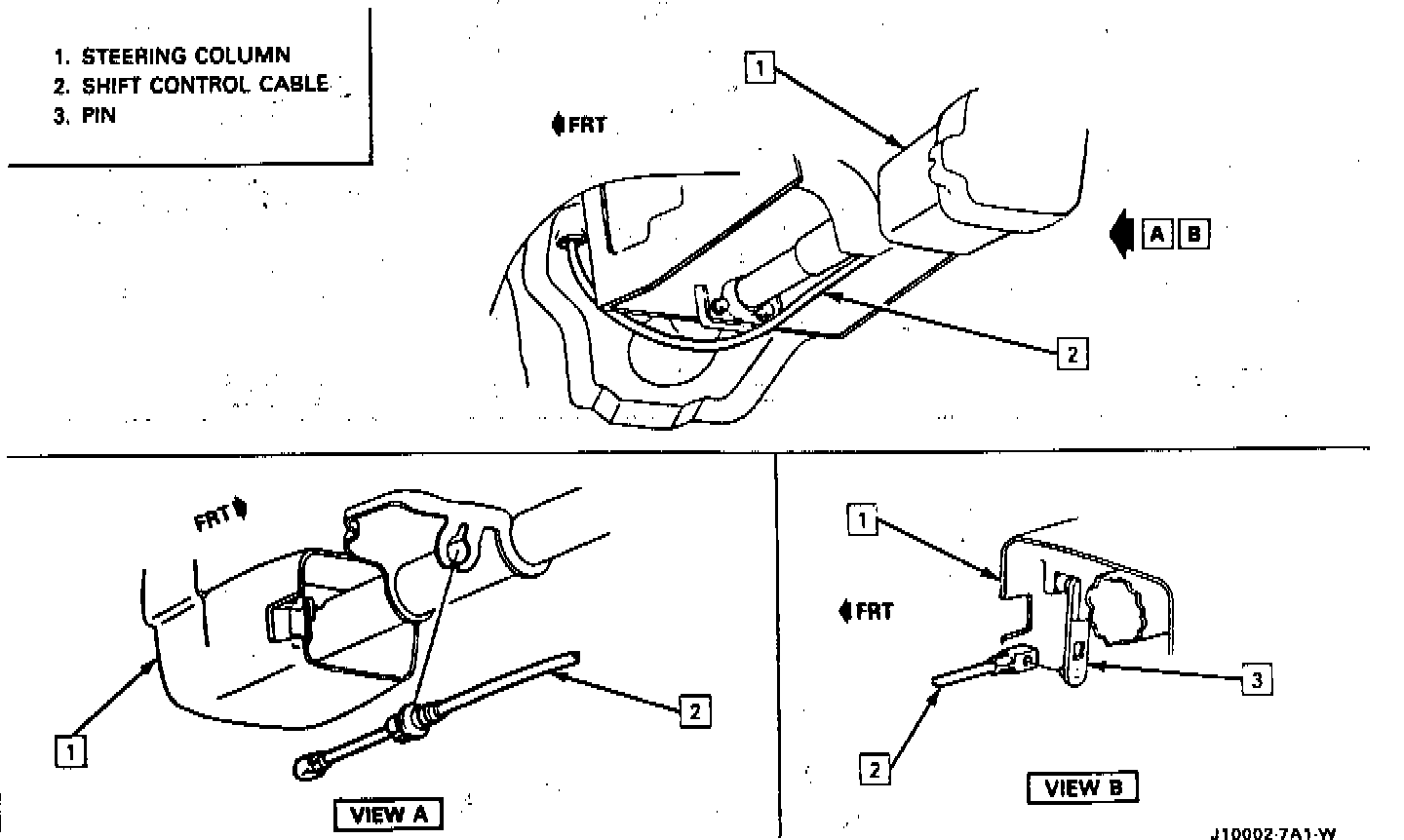 2. Cable from transaxle lever and bracket.