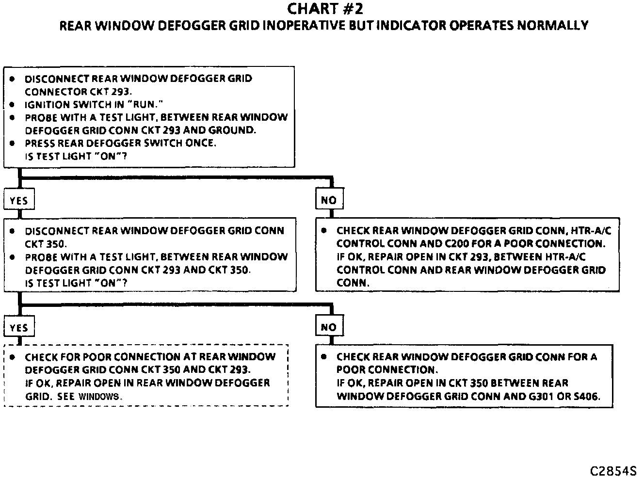 Chart #2 Rear Window Defogger Grid Inoperative But IND Operates Normally: