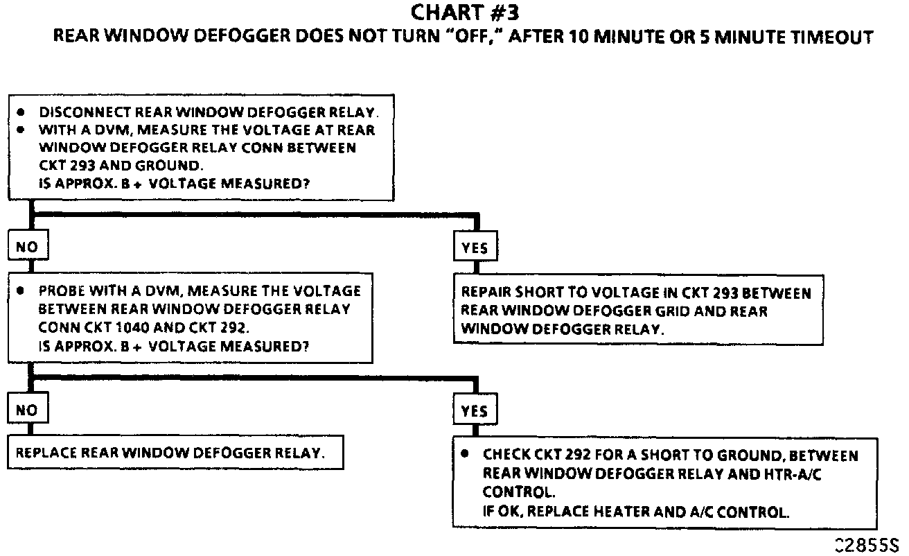 Chart #3 Rear Window Defogger Does Not Turn Off