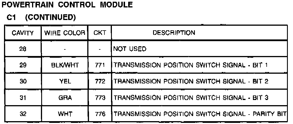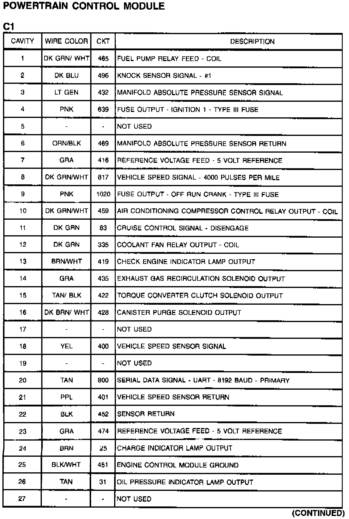 Powertrain Control Module: C1 (Part 2 Of 2):