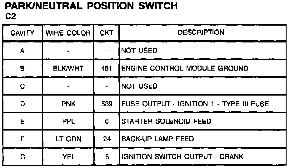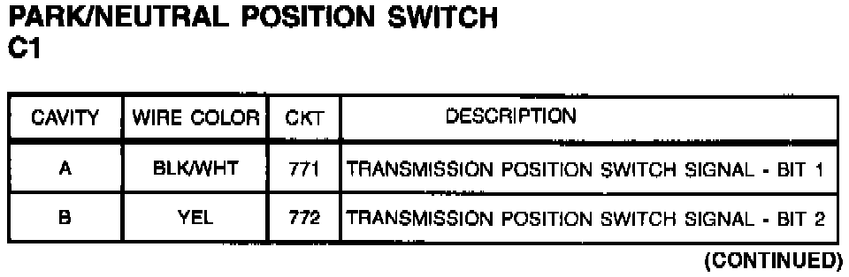 Park/Neutral Position Switch: C1 (Part 2 Of 2):