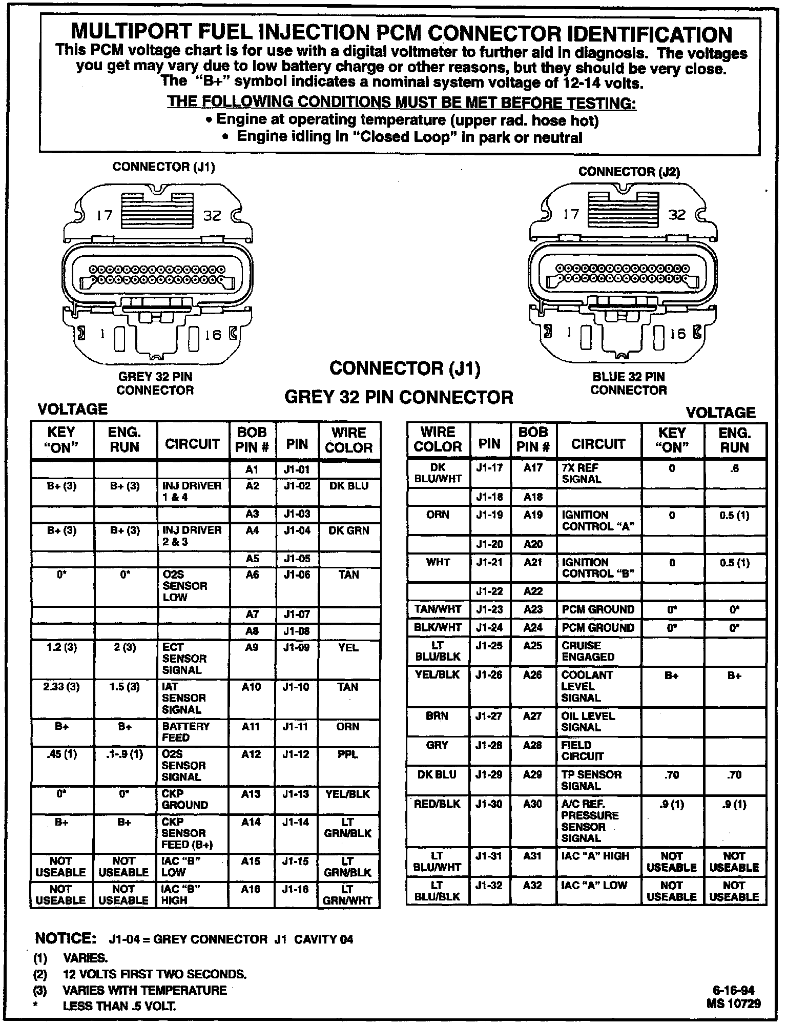 GREY 32 PIN CONNECTOR (J1)