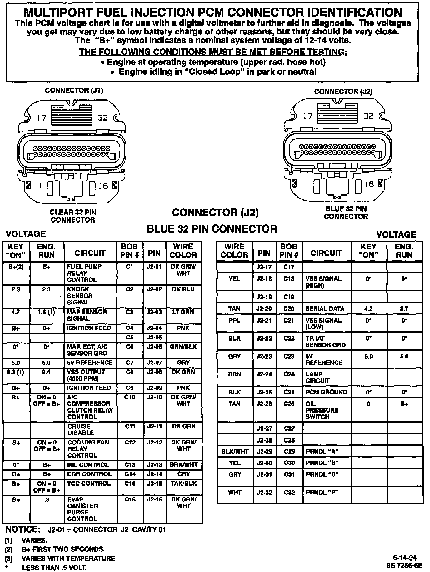 BLUE 32 PIN CONNECTOR (J2)