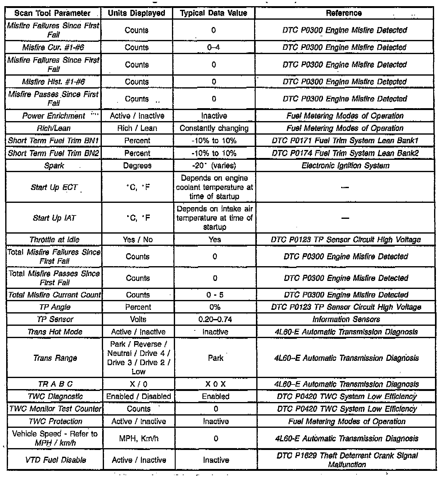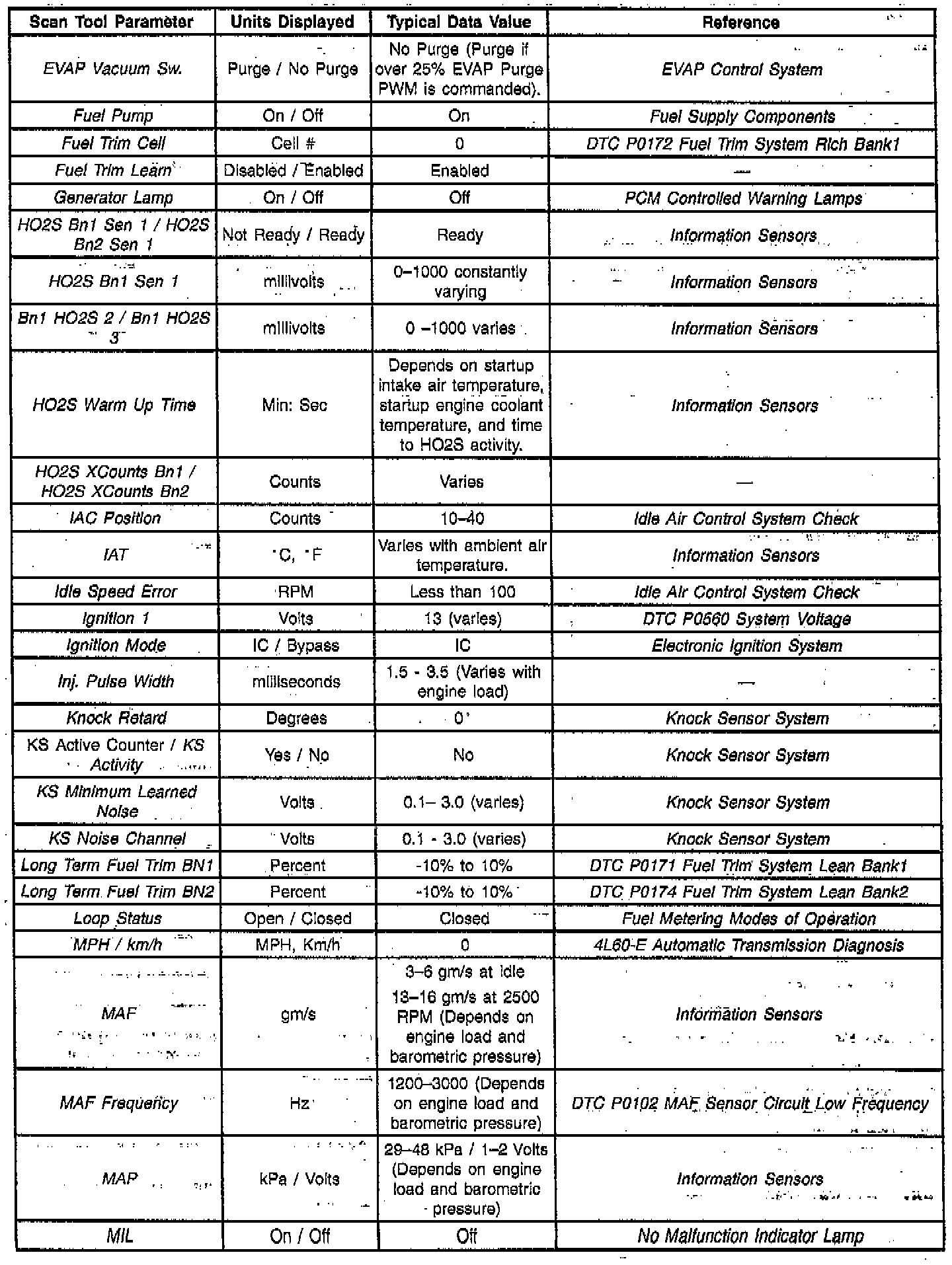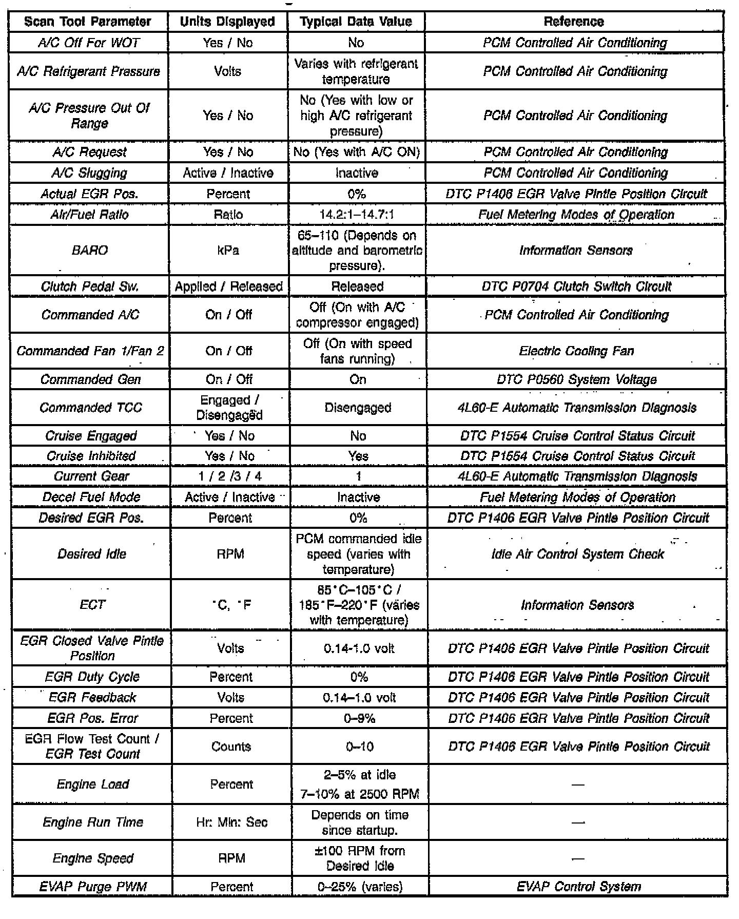 Scan Tool Data List