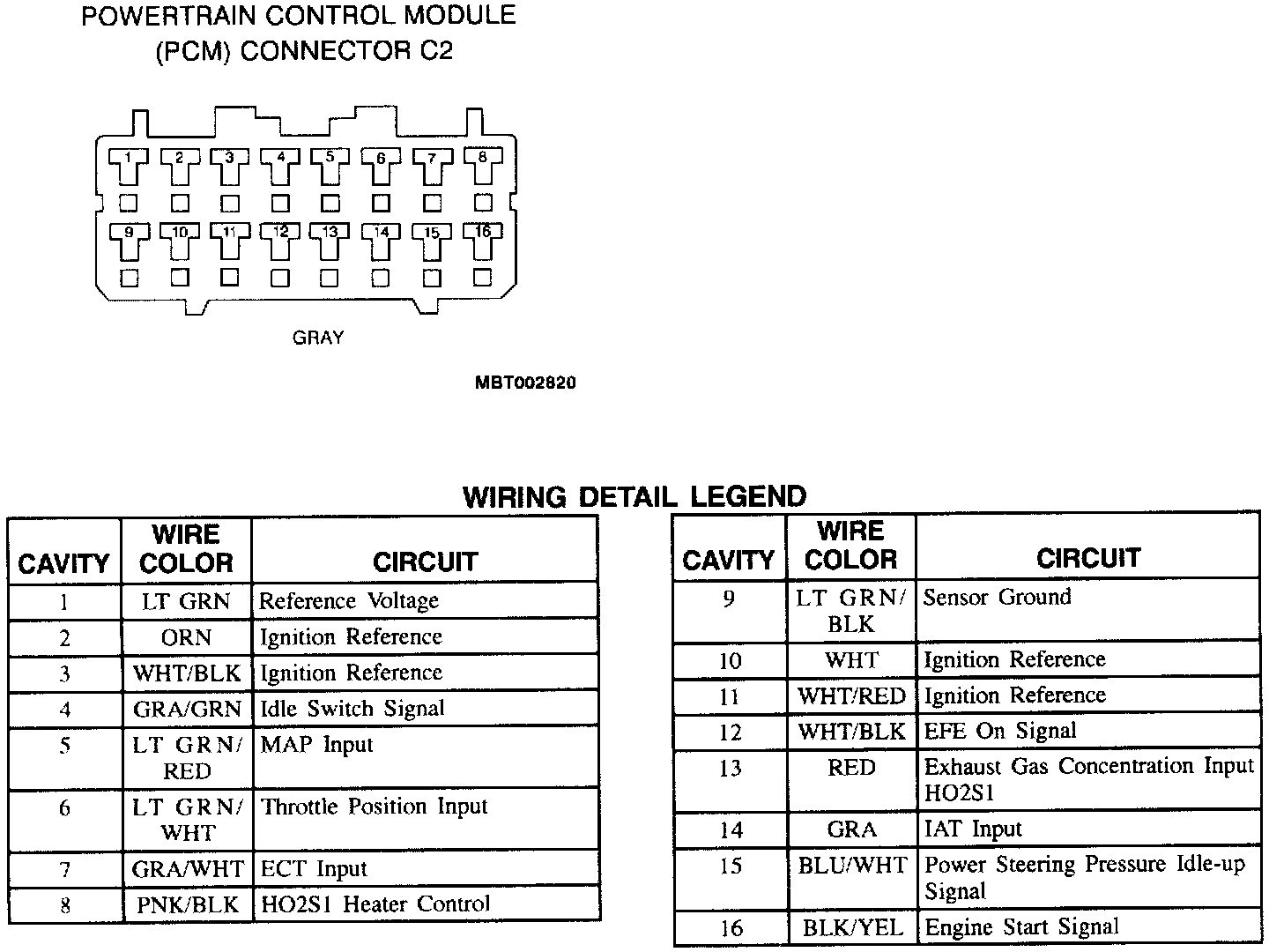 Powertrain Control Module (PCM) Connector C2: