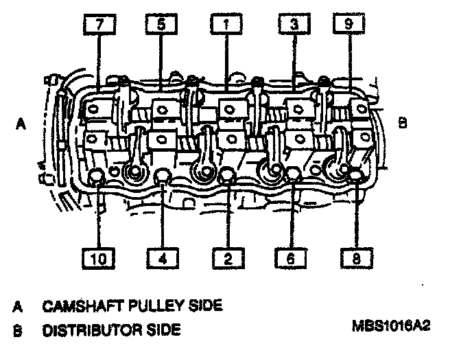 In the sequence shown (refer to image), tighten bolts a little at a time and evenly. Repeat tightening sequence three or four times before reaching specified torque.