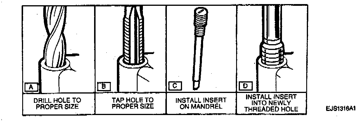 NOTE: Damaged threads may be reconditioned by drilling out, rethreading and installing a suitable thread insert. General purpose thread repair kits are available commercially.WARNING: Wear safety glasses to avoid eye damage.