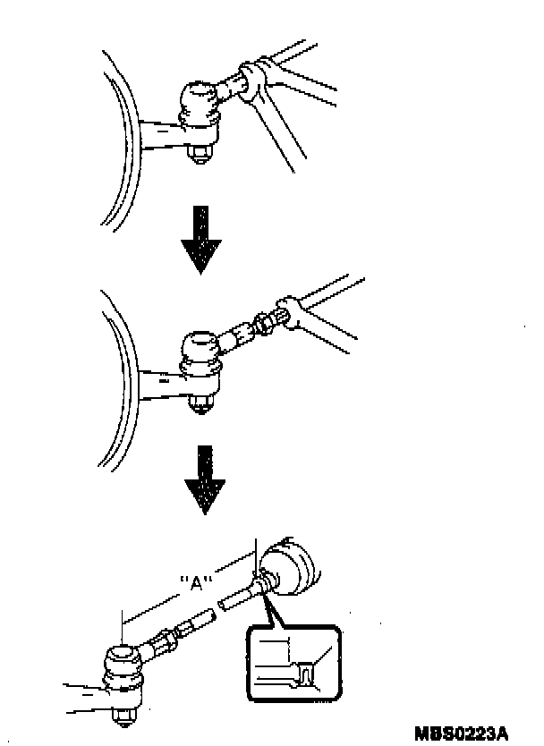 ^ In this adjustment, right and left tie rods must be equal in length ("A").