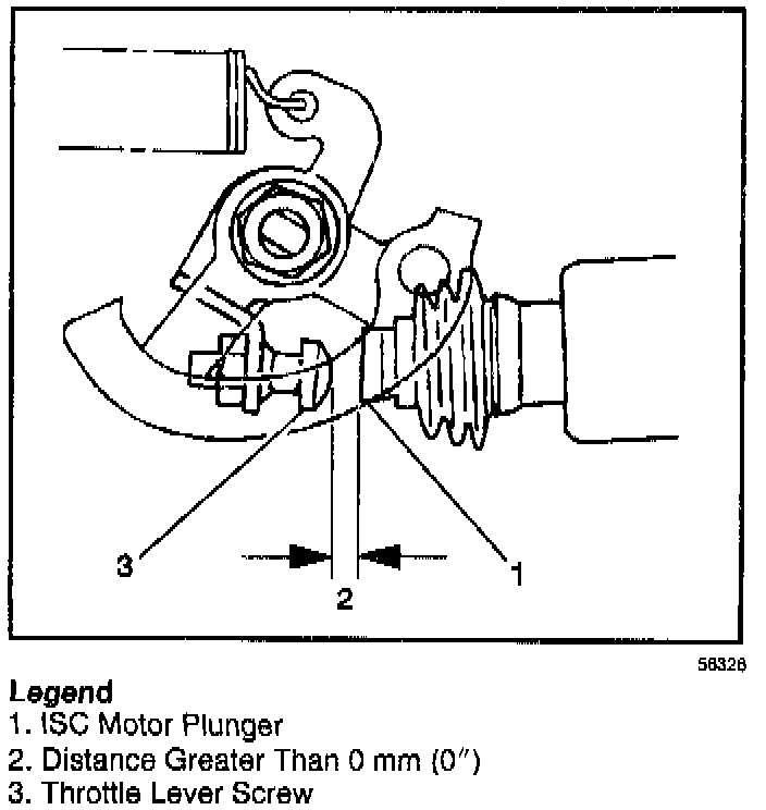 2. Inspect the Idle Speed Control (ISC) motor plunger. If the ISC motor plunger is contacting the throttle lever screw, then the engine must be brought to operating temperature.