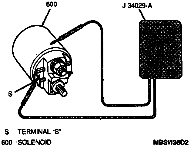 11. Solenoid hold-in coil resistance between terminal "S" and the solenoid case using the J 34029-A. If resistance is not 5 ohms or less, the hold-in coil is open and the solenoid must be replaced.