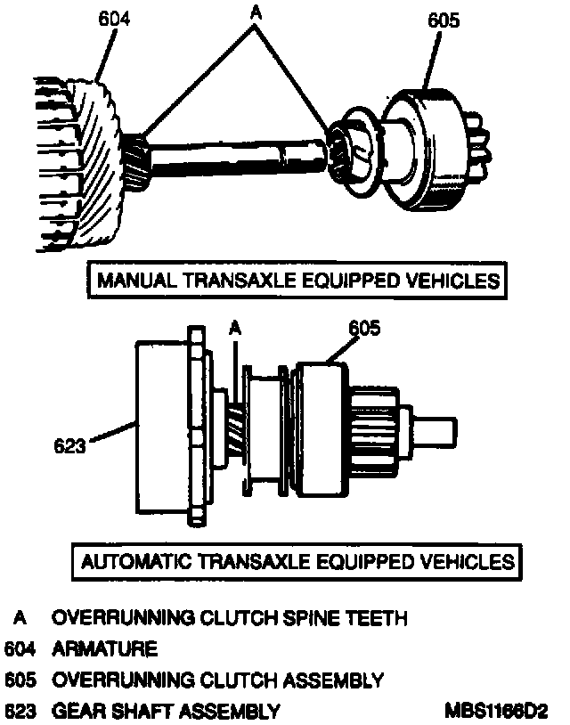 3. Overrunning clutch spline teeth for wear or damage; replace if necessary.
