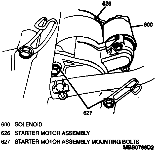 4. Remove two mounting bolts and starter motor assembly from vehicle.